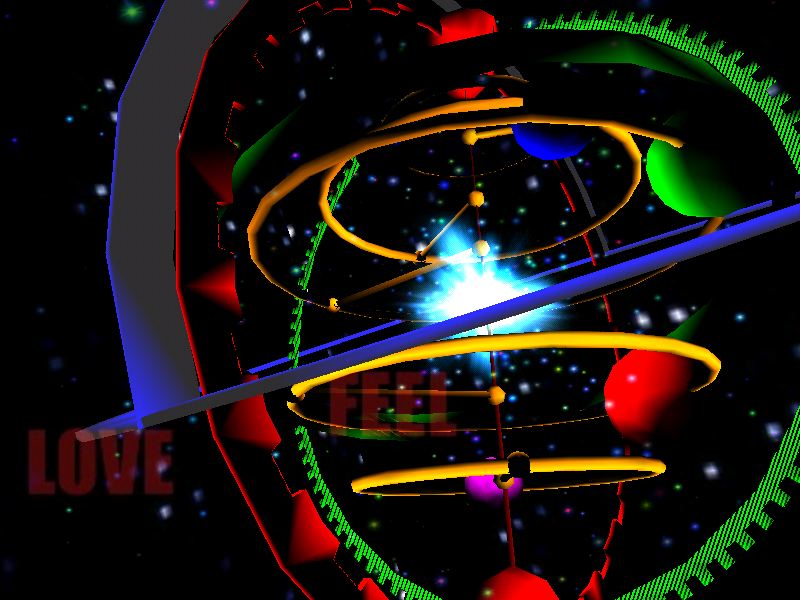 Anyway there are some effects that took a lo of work. One of them was the fire tunnel with the man falling and the other one was the rotating planets. The first one took a lot because the complexity of the tunnel, that was generated in realtime (the fire texture was static). The rotating planets helped a lot to debug the positioning and relative movement routines of the demo engine.