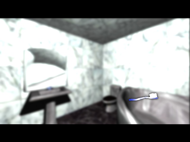 We tried some FOV experiments and image matrix effects with more or less success, but apart of that there are not more technical advances in the demo. We got a problem with the texture borders of some textures, that appeared in black when using some 3D cards, and until now we have not an explanation of the causes, probably it was a drivers problem but, who knows?