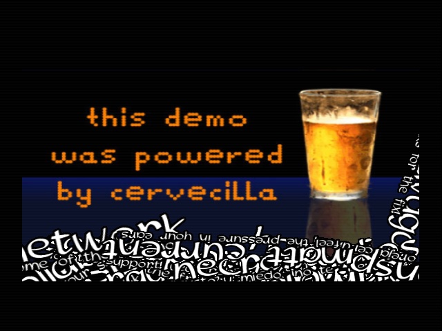 I would like to thank xphere / spontz ^ zona neutra for the time he dedicated to build the Windows version of the engine at the last moment and all the support, and Ufix / fuzzion for telling me that the arrays, in C, start with zero (we were under heavy ethilic conditions this time).